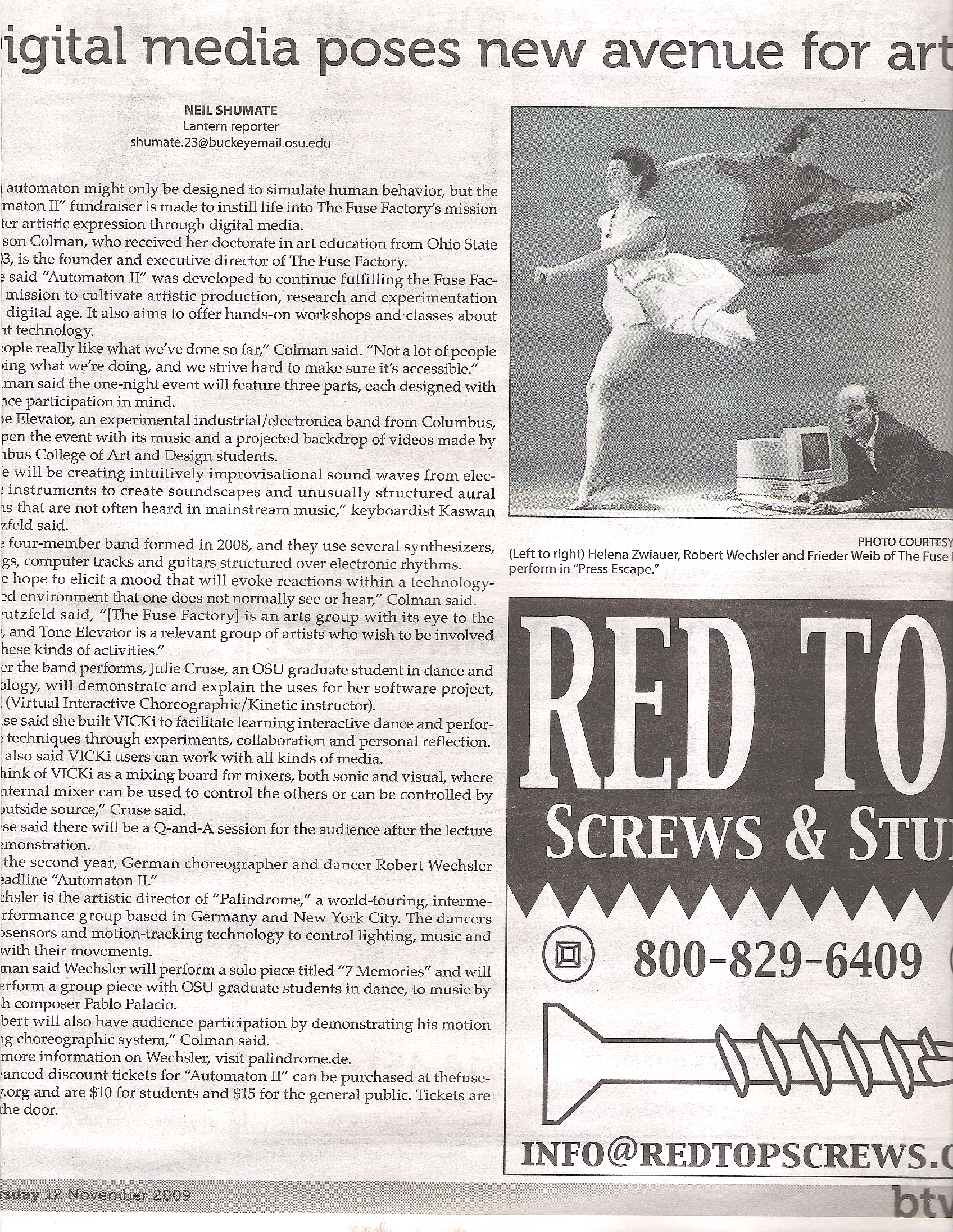 This article printed in The Lantern's "btw" weekly arts' insert on 11.12.09 CLICK ! -->