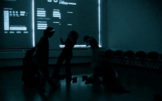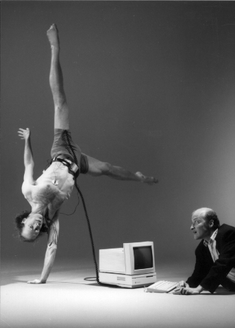 The dancers use bio-sensors and motion tracking technology to control lighting,
